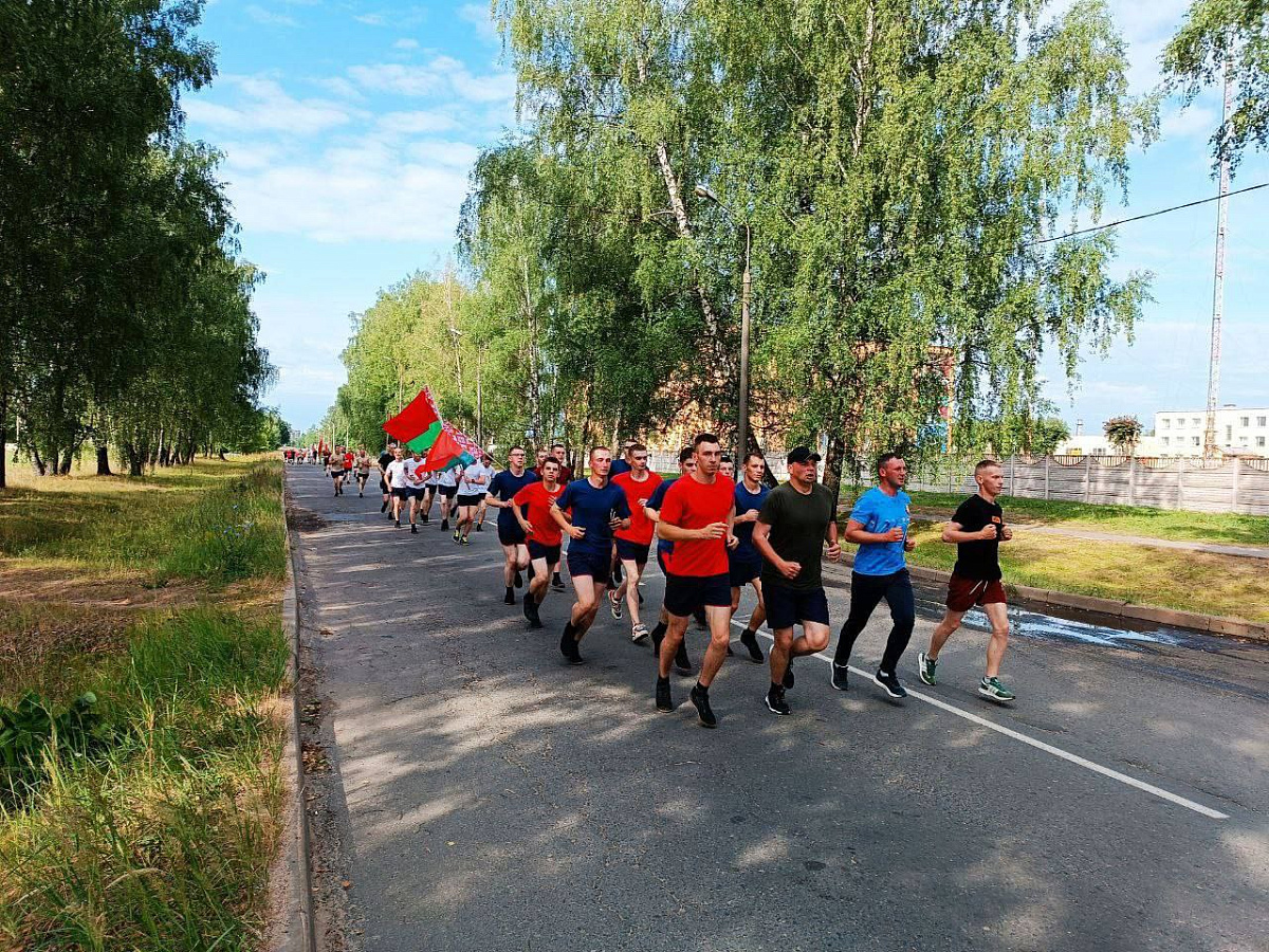 «Вместе за сильную и процветающую Беларусь!» — под таким лозунгом по улицам Жодино совершили легкоатлетический забег военнослужащие.