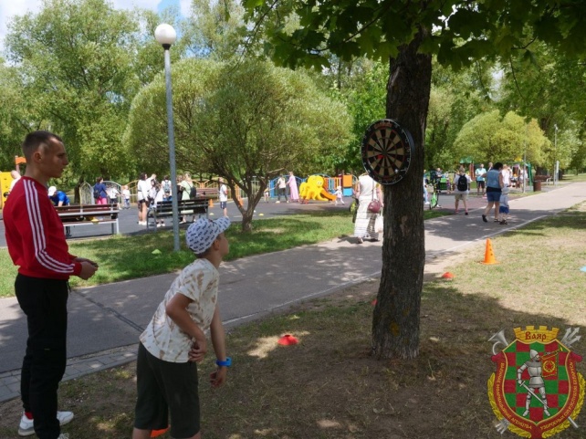 Все желающие смогли посостязаться в перетягивании каната, показать свои силы в сгибании и разгибании рук в упоре лежа от платформы, проверить свою меткость в игре дартс.