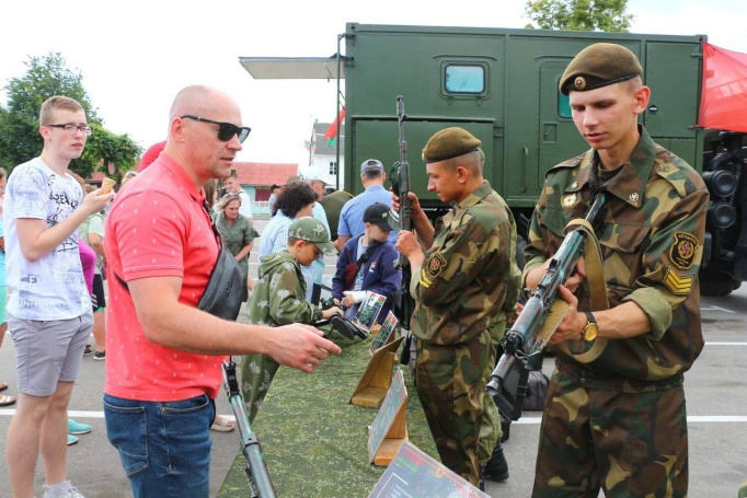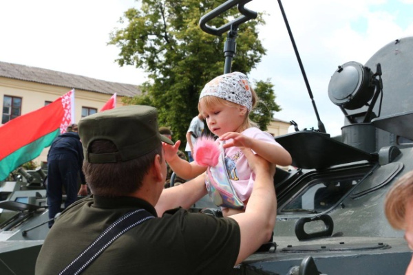 Гвардейцы приняли участие в митинге, прошли по центральной улице Слонима торжественным маршем и организовали выставку вооружения и военной техники.