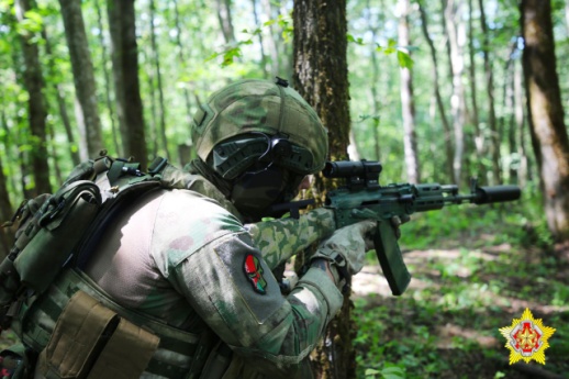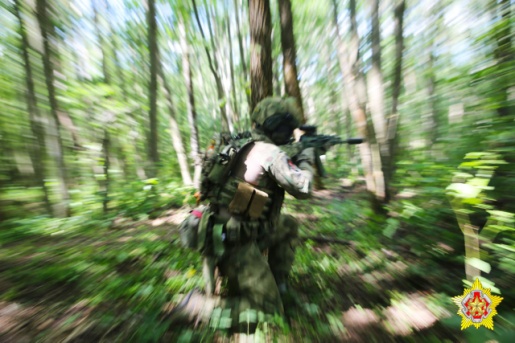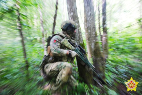 Во время отработки элемента «бой в лесу» десантники 103-й Витебской отдельной гвардейской воздушно-десантной бригады работали в паре, уничтожая цели из автомата и пистолета, перемещаясь от укрытия к укрытию. Главное требование – не терять из виду напарника, движения не должно прерываться ни на мгновение. Лишь небольшие короткие остановки.