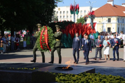 В честь этой победы в городском парке имени Жилибера состоялся митинг, прошла церемония возложения венков и цветов к братской могиле советских воинов и партизан, погибших в годы Великой Отечественной войны. В мероприятии приняли участие представители местных органов власти, командования ЗОК, военных комиссариатов области, города и района, воинских частей гарнизона, ветераны, общественность. – Сегодня мы отмечаем 79-ю годовщину освобождения города от немецко-фашистских захватчиков. Это значимый день для каждого жителя Гродно и всего региона. Мы идем к священным местам, чтобы выразить глубокую признательность тем, кто в жестоких сражениях отстоял честь и независимость родной земли. Человек живет, пока помнит. Помнит о людях, которые ценой своей жизни проложили дорогу в будущее. В этой братской могиле похоронены 44 героя. И каждый раз, склоняя голову у этого священного места, нас пронзает чувство гордости за величие подвига, совершенного ушедшими в бессмертие. Их имена живут в названиях улиц, школ и гимназий, пограничных застав и музеев нашего города. Мы всегда должны помнить, что мирное небо над головой может быть только в том случае, когда мы едины, – отметил в ходе митинга председатель Гродненского городского исполнительного комитета Андрей Хмель. Затем участники мероприятия возложили венки и цветы к братской могиле советских воинов и партизан. Память павших за освобождение родной Беларуси собравшиеся почтили минутой молчания.