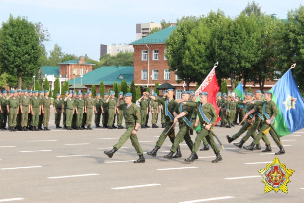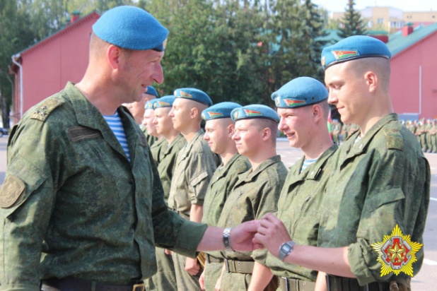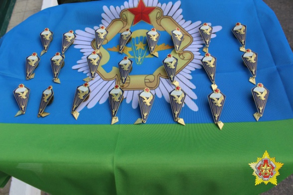 На плацу 103-й Витебской отдельной гвардейской воздушно-десантной бригады командир соединения наградил военнослужащих знаком «Парашютист». Значок «Парашютист» выдается военнослужащим после совершения первых прыжков.