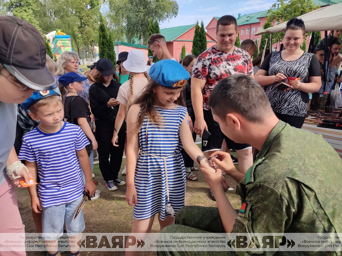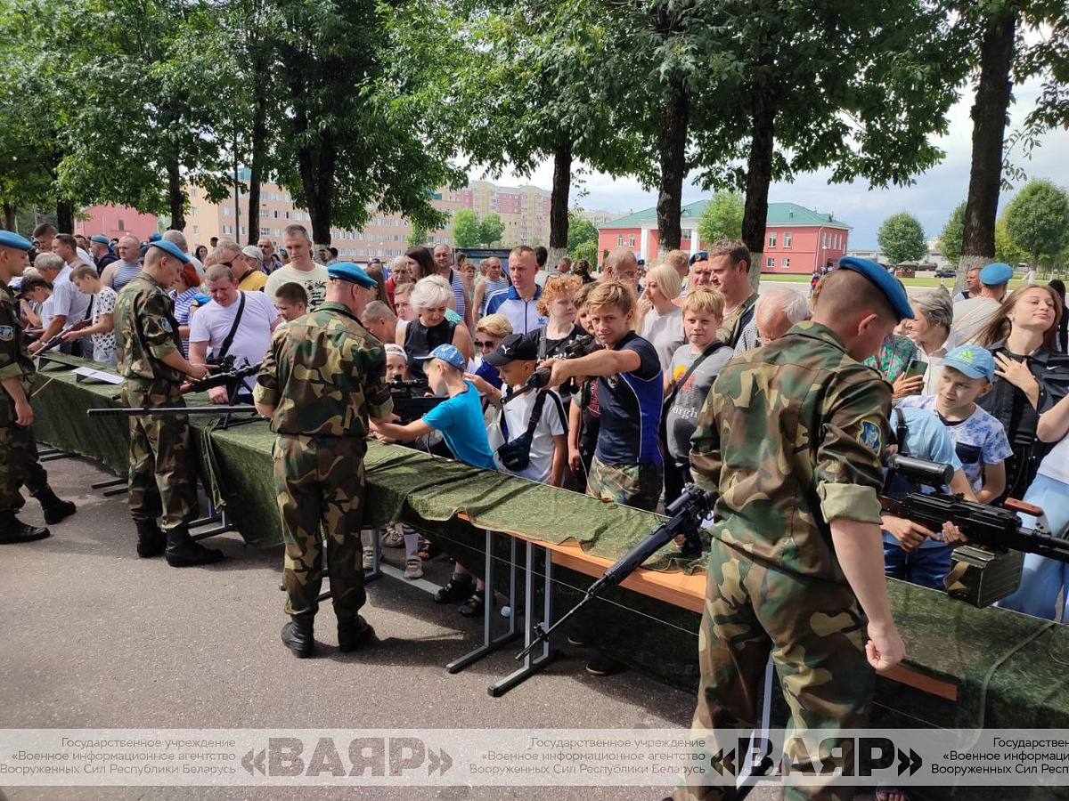 С самого утра для жителей города был открыт вход на территорию 103-й Витебской отдельной гвардейской воздушно-десантной бригады. Гостей у десантников очень много, особенно детей.