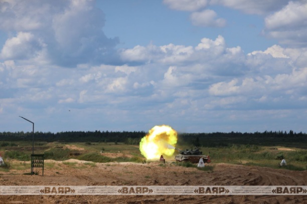 На Борисовском полигоне военнослужащие одного из танковых подразделений 120-й отдельной гвардейской механизированной бригады выполнили упражнения стрельб штатным снарядом с закрытых огневых позиций.