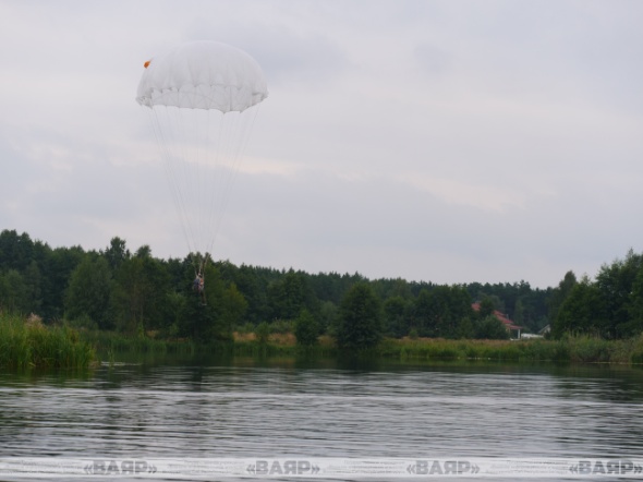 Военнослужащие 38-й Брестской отдельной гвардейской десантно-штурмовой бригады совершили прыжки на воду из вертолета Ми-8МТВ-5.