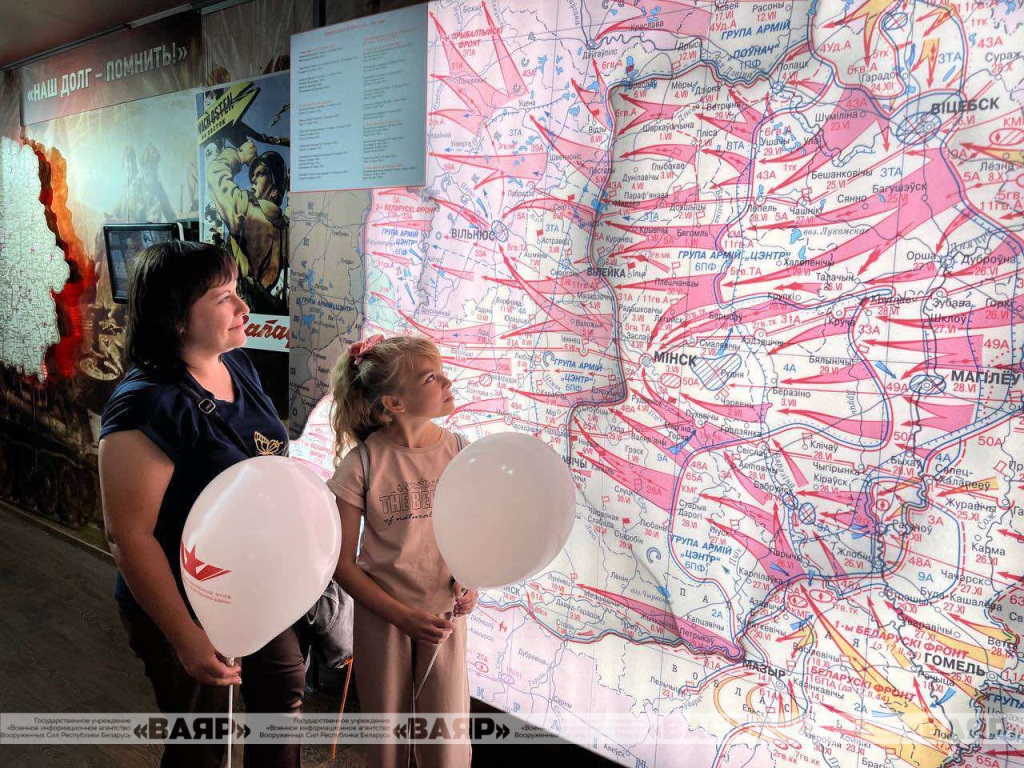 Большая часть мобильной экспозиции состояла из трех разделов: начальный период войны (1941–1942 годы), подпольная и партизанская борьба, приход Красной Армии в дни Белорусской стратегической наступательной операции «Багратион» 1944 года. Эти вехи в жизни белорусского народа организаторы экспозиции отразили демонстрируемыми фотоматериалами, копиями документов, плакатов, репродукциями тематических картин. Основная часть материала была предельно наглядна: в ней хватало предметов и личных вещей воинов-освободителей, а также точных муляжей вооружения и снаряжения бойцов советских войск и партизан. Для всех заинтересованных проводили групповые экскурсии, делали пояснения, включали видеохронику. Также при возможности музейные работники выявляли и собирали материалы от посетителей – предметы и вещи, что относятся к описываемому периоду: инициативные граждане – один из самых разноплановых источников, где работники музейной сферы черпают новые экспонаты. Рядом с мобильной экспозицией сотрудники Белорусского государственного музея истории Великой Отечественной войны развернули фотозону с оружием и амуницией. Она пользовалась большим спросом у подростков и детей помладше.