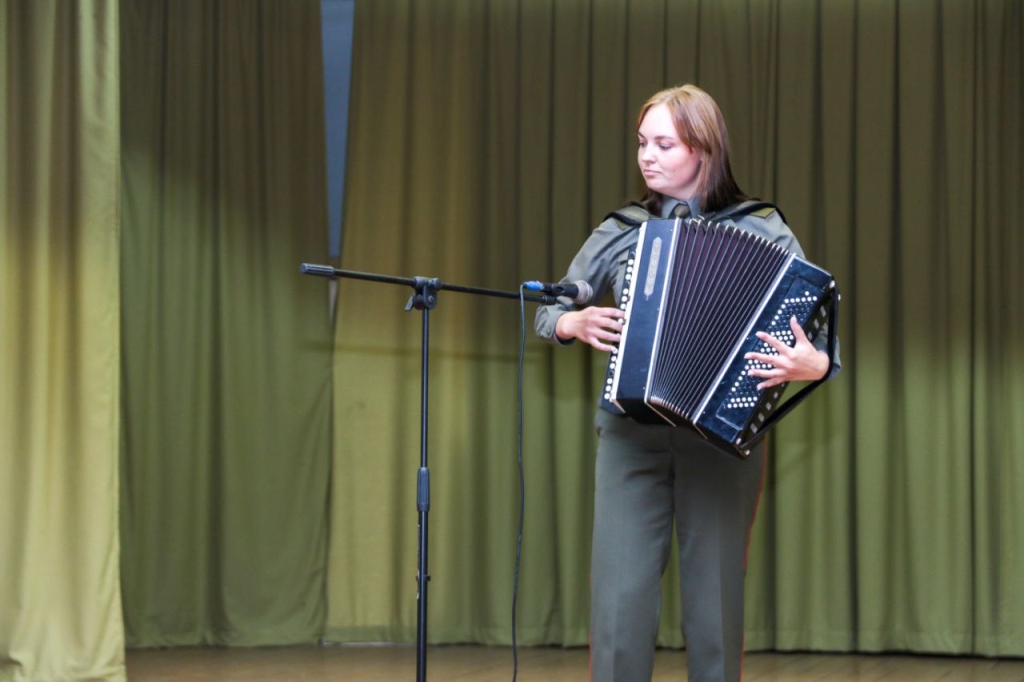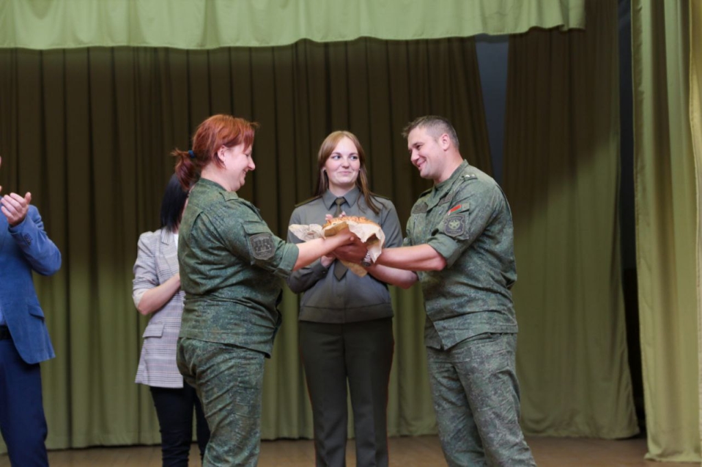 Для военнослужащих 557-й инженерной бригады, которые находятся на полевом выходе, выступили артисты Гродненского гарнизона. В конце концерта командиру батальона от лица всех военнослужащих воинской части вручили каравай.