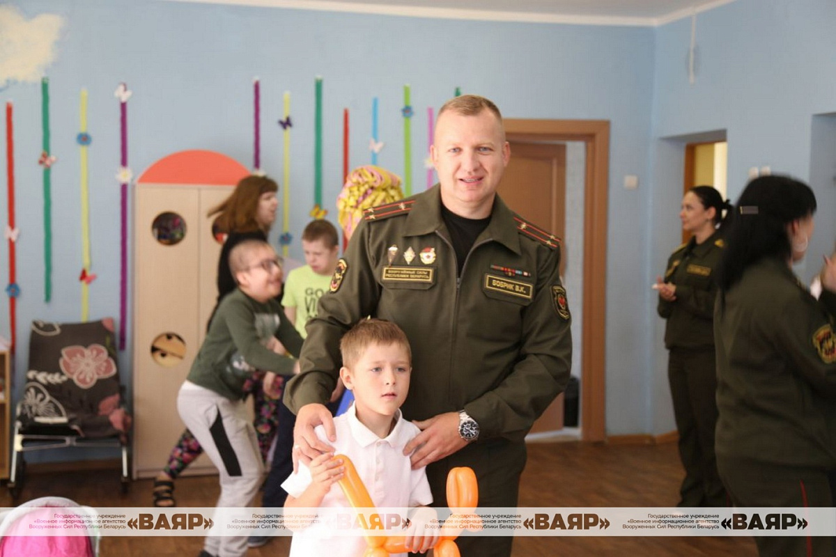 Военнослужащие 127-й гвардейской ордена Красной Звезды бригады связи (территориальной) посетили государственное учреждение образования «Центр коррекционно-развивающего обучения и реабилитации Минского района» в деревне Боровляны. Они поздравили детей с Днем знаний, вручили им подарки.
