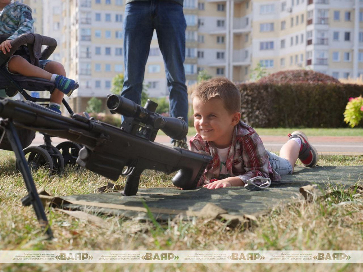 Военнослужащие организовали фотозоны с военной экипировкой. Здесь можно почувствовать себя в роли военного. Например, надеть бронежилет, подержать в руках автомат или пулемет.
