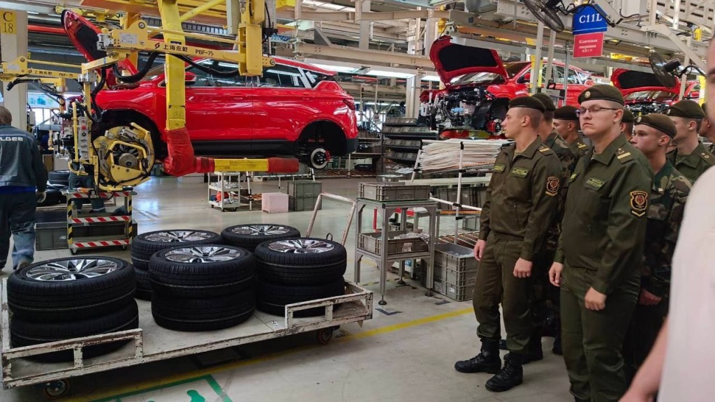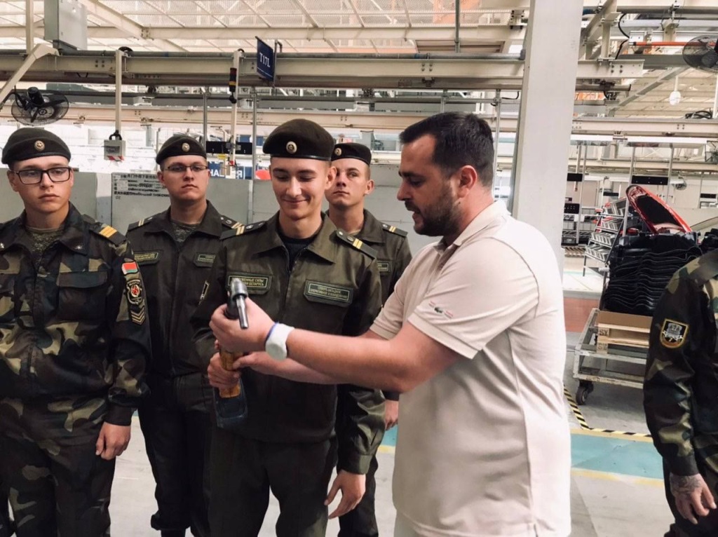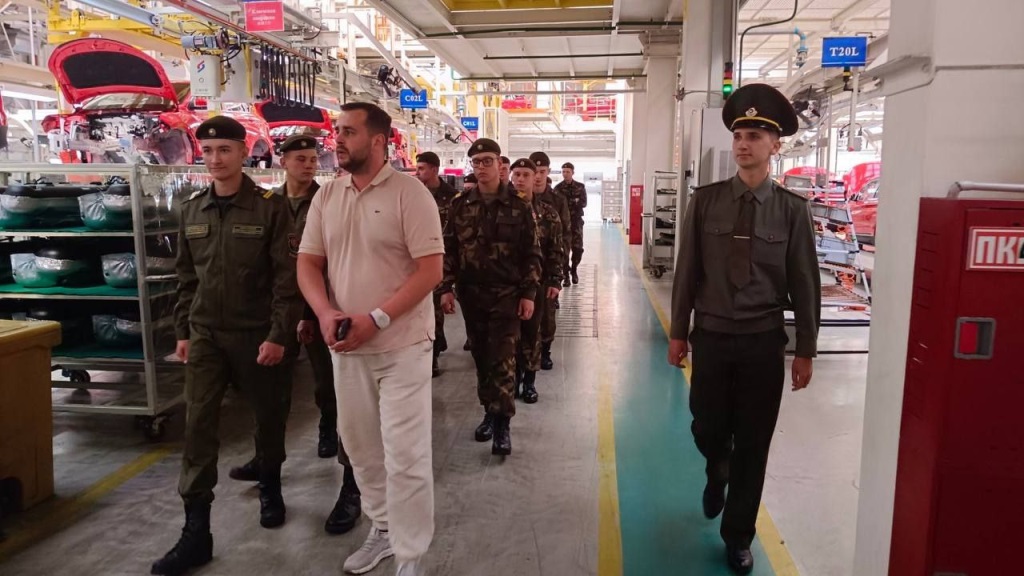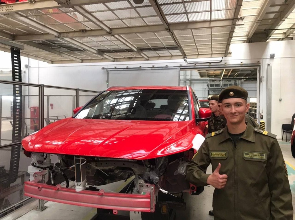 Для военнослужащих была организована экскурсия по территории завода. Личный состав увидел полный цикл сборки автомобилей и смог пообщаться с работниками завода.