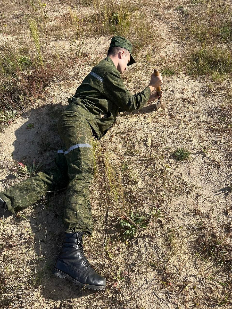С курсантами военно-транспортного факультета в Белорусском государственном университете транспорта проведено занятие по военно-инженерной подготовке, в ходе которого военнослужащие выполнили норматив по оборудованию и маскировке одиночных окопов для стрельбы лежа.