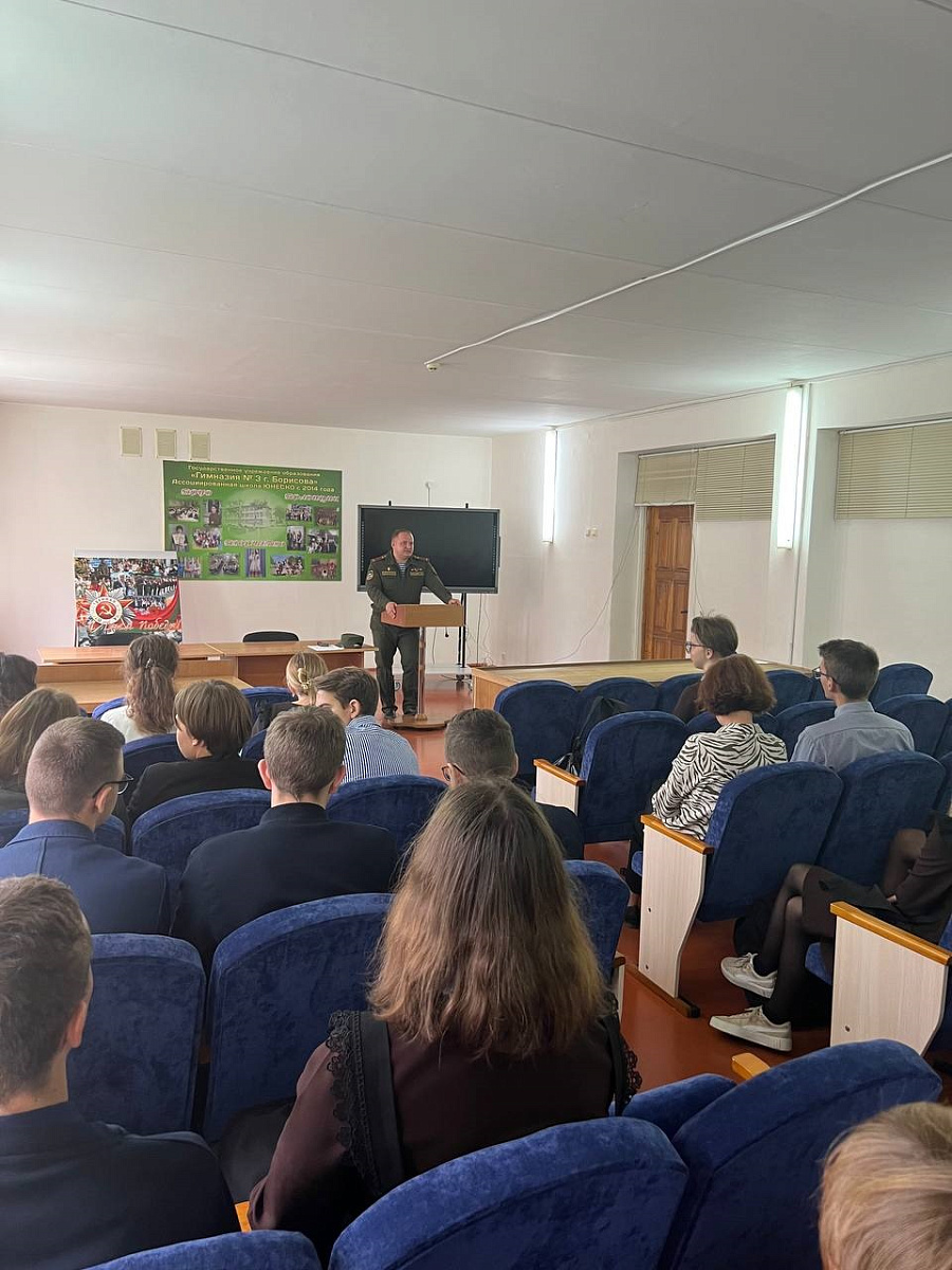 Сегодня представителями воинской части был проведен урок на тему : «Единство белорусского народа — основополагающий фактор сохранения и укрепления суверенитета и независимости страны». Урок проводился в формате круглого стола и вызвал большой интерес у учащихся.