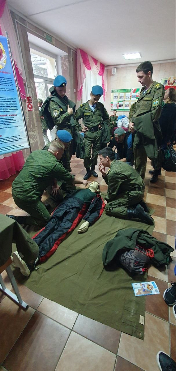 На профориентационной точке военные медики обучали ребят оказанию первой помощи: проведению сердечно-легочной реанимации, остановке кровотечений при помощи жгута и турникета, а также различным приемам десмургии (наука о наложении повязок).
