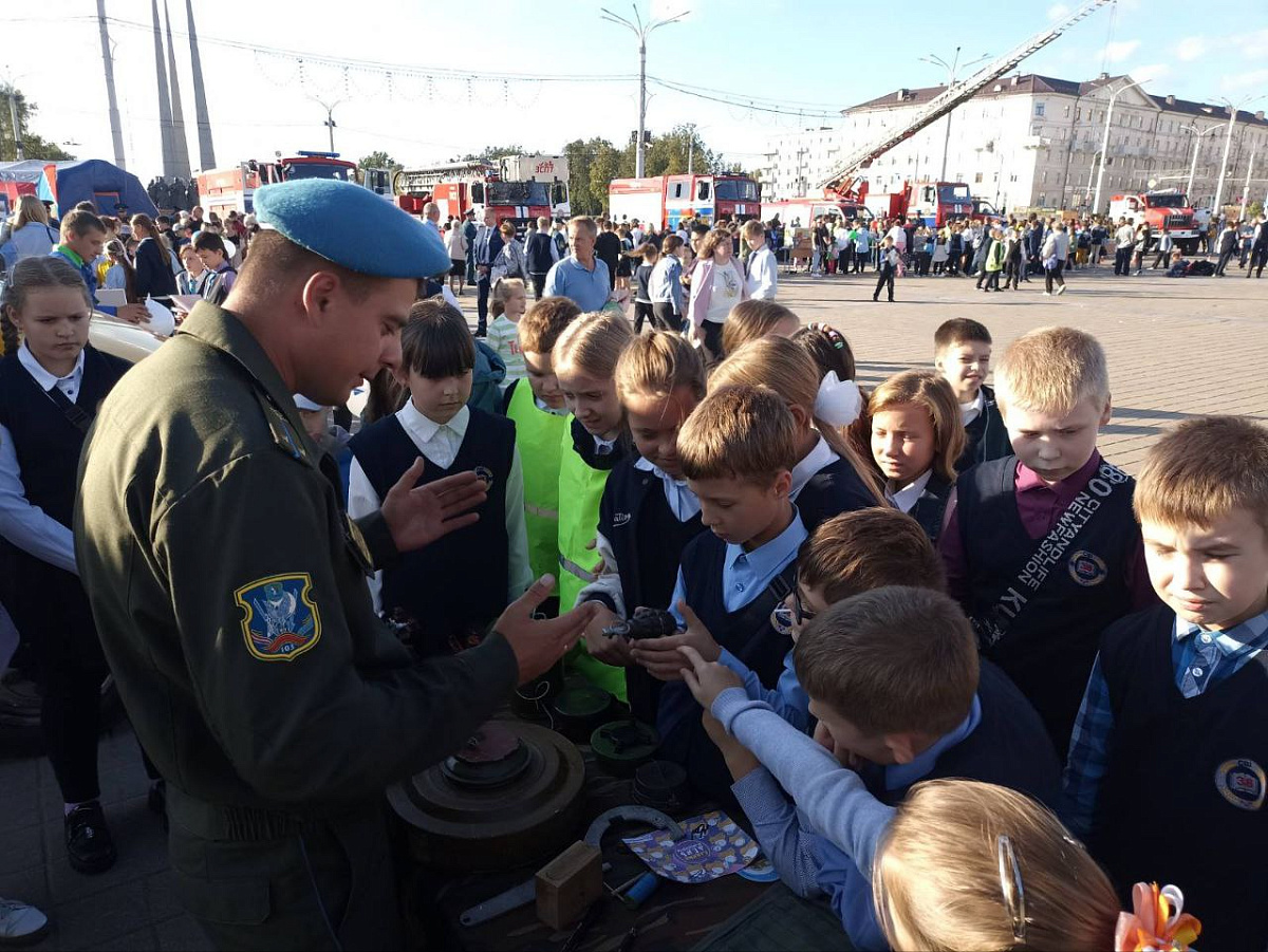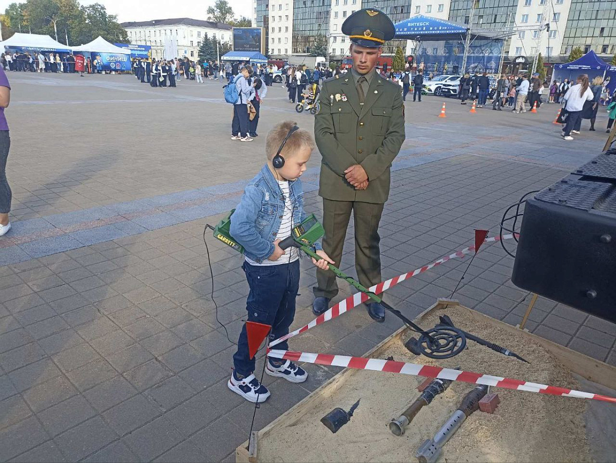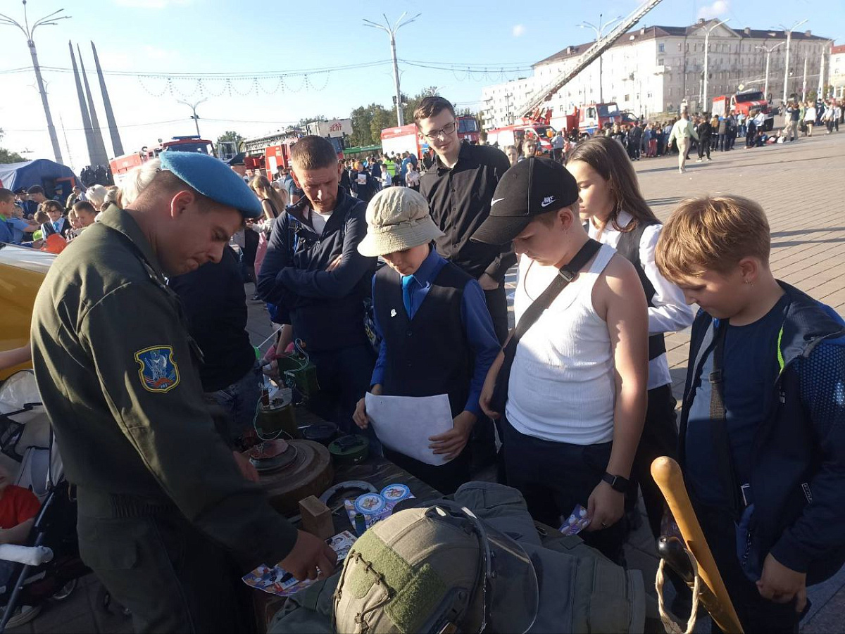 В рамках проведения единого дня безопасности на площади Победы города Витебска десантники организовали интерактивную выставку военной техники и инженерных средств. Выставка заинтересовала взрослых и повеселила даже самых маленьких.