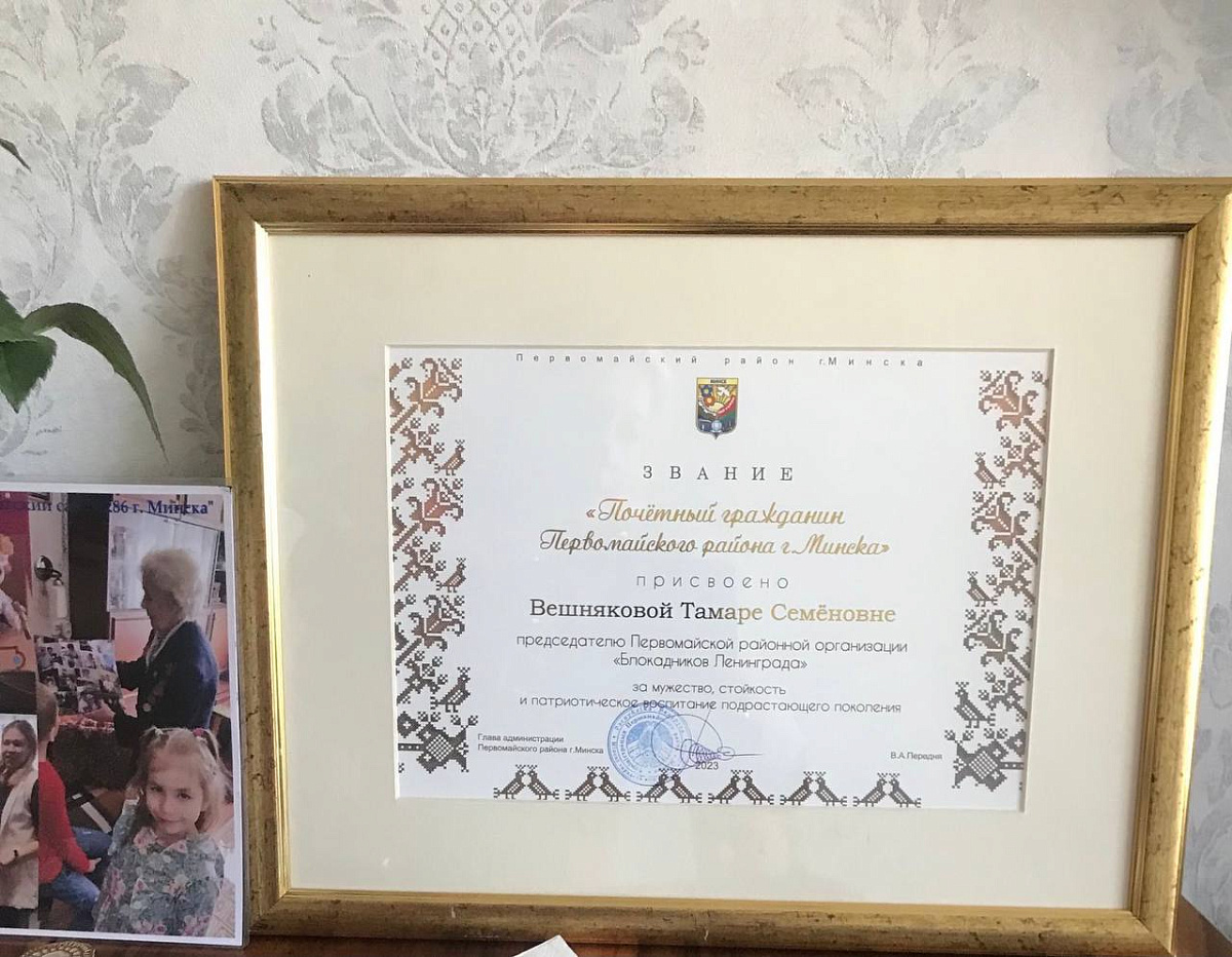 А в этом сентябре ветеран принимает многочисленные поздравления. Одним из них стало присвоение Тамаре Семёновне звания «Почетный гражданин Первомайского района г. Минска».
