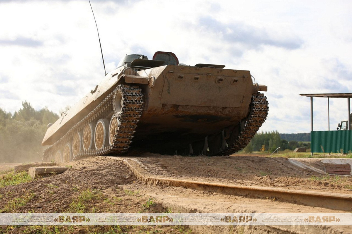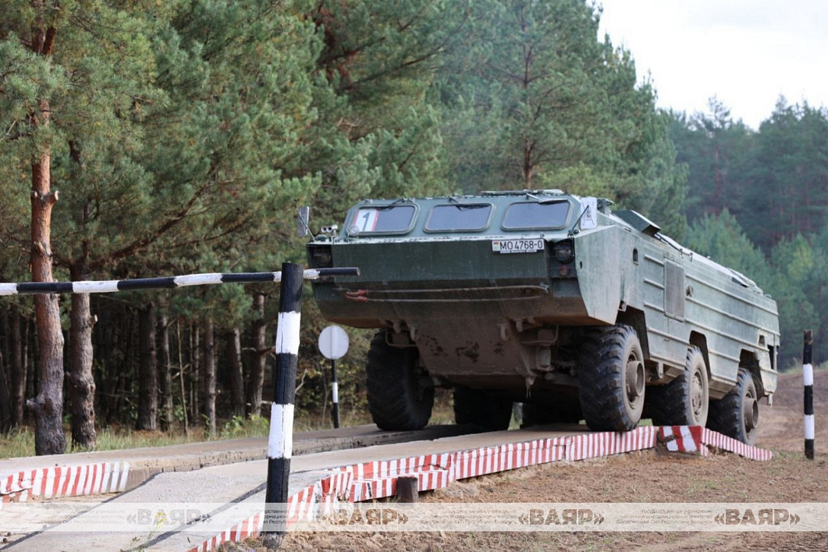 На автодроме учебного центра обучаемые выполняли зачетное упражнение и преодолевали препятствия на МАЗ-543, МАЗ-537, БАЗ-5921 и МТЛБ.