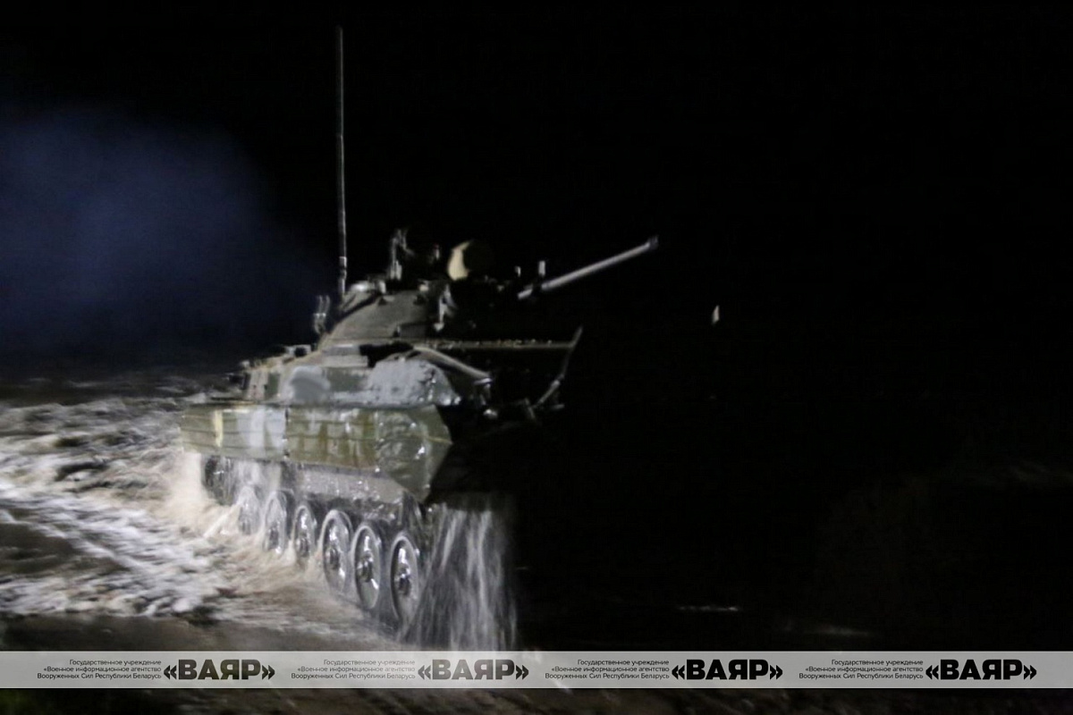 В ходе марша военнослужащие преодолели водную преграду в темное время суток без использования приборов ночного видения.