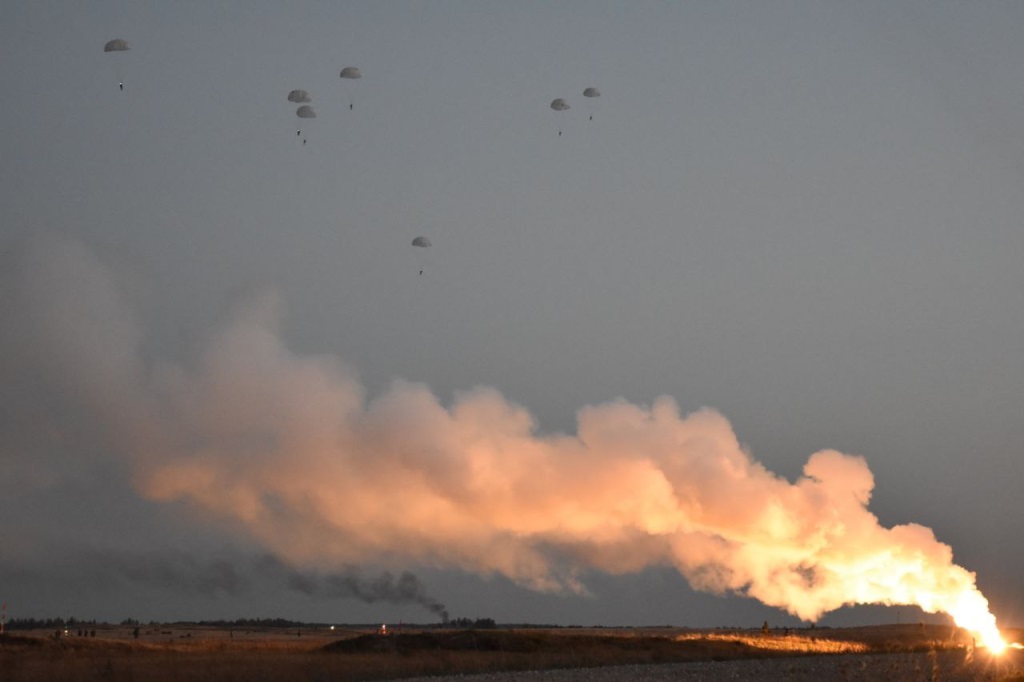 Выброска десанта со штатным вооружением и экипировкой прошла ночью с высоты 600 метров.