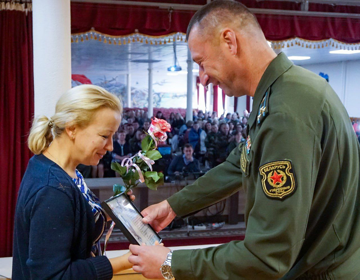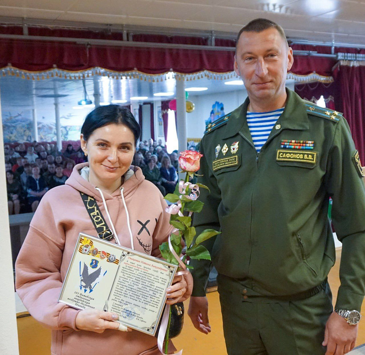 Командир бригады гвардии полковник Владимир Сафонов поздравил присутствующих женщин с праздником, поблагодарил матерей за воспитание достойных защитников, подарил им цветы и вручил благодарственные письма.
