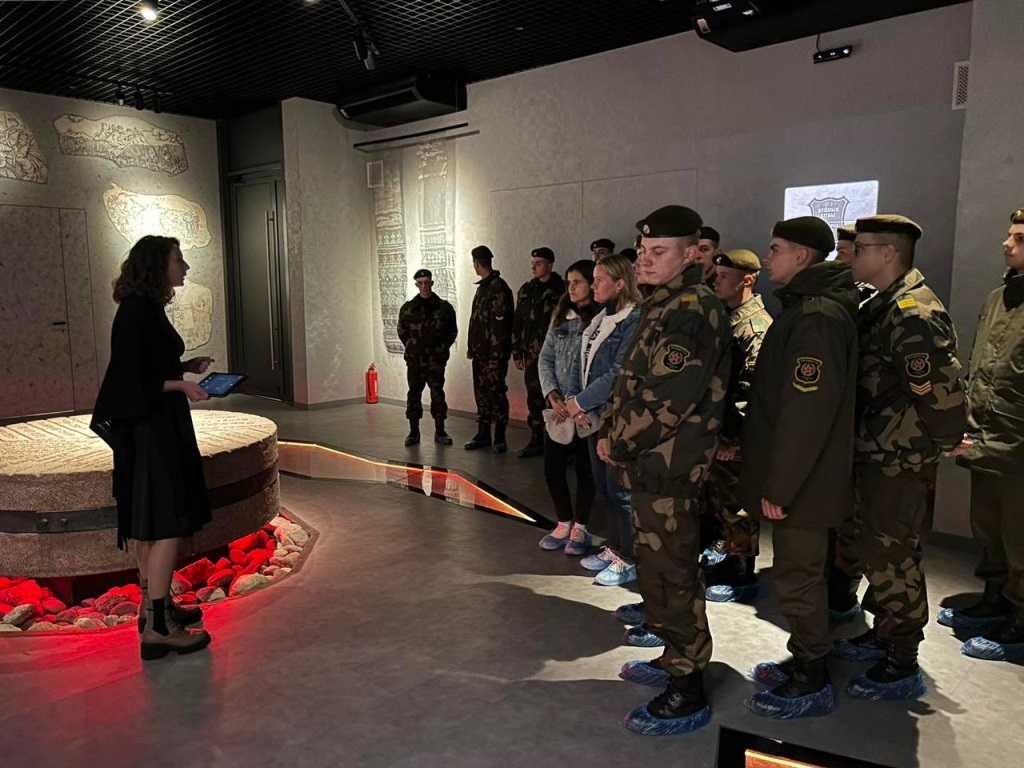 В сопровождении экскурсовода военнослужащие ознакомились с музеем памяти жертв белорусского народа, прошли по единственной улице сожженной деревни, почтили память погибших в годы Великой Отечественной войны минутой молчания.