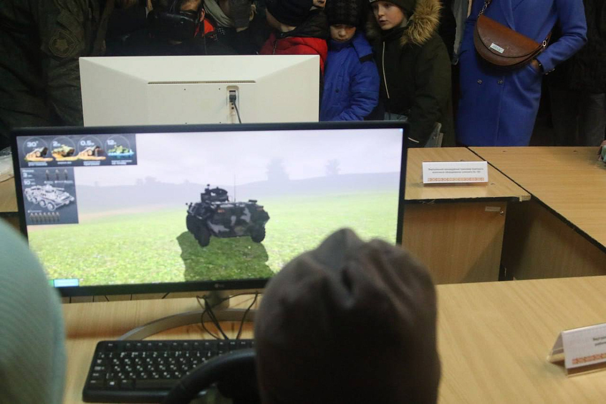 Школьникам и абитуриентам продемонстрировали тренажеры для виртуальной стрельбы, динамические тренажеры вождения, а также образцы вооружения и военной техники.