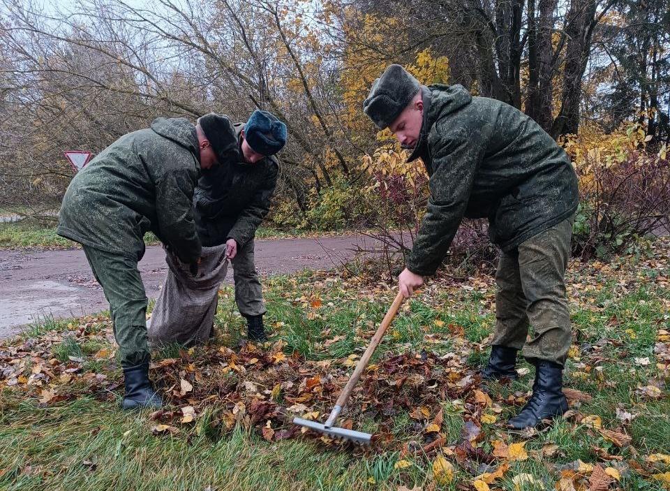 Личный состав одного из подразделений войсковой части 30151 навел порядок на территории братской могилы воинов, погибших в 1941-1945 гг., вблизи деревни Пятевщины.