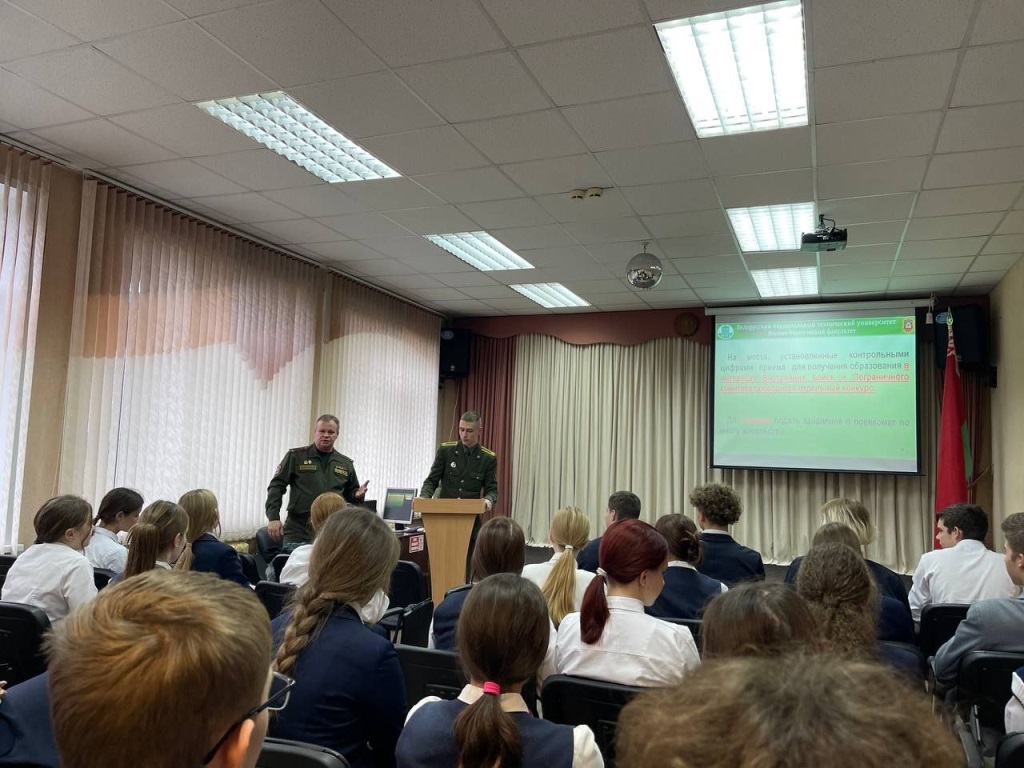 В рамках мероприятий военно-патриотического воспитания и с целью формирования активной гражданской позиции с учащимися 10-х и 11-х классов ГУО «Речицкий районный лицей» представителями военно-технического факультета в БНТУ была проведена профориентационная работа.