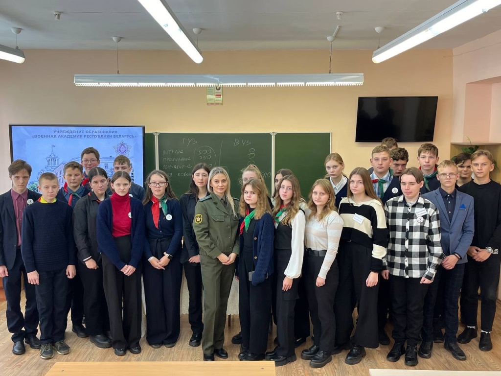 Офицер факультета связи и автоматизированных систем управления Военной академии Республики Беларусь майор Анастасия Перхова провела профориентационную работу с учащимися средних школ города Браслава и Браславского района.