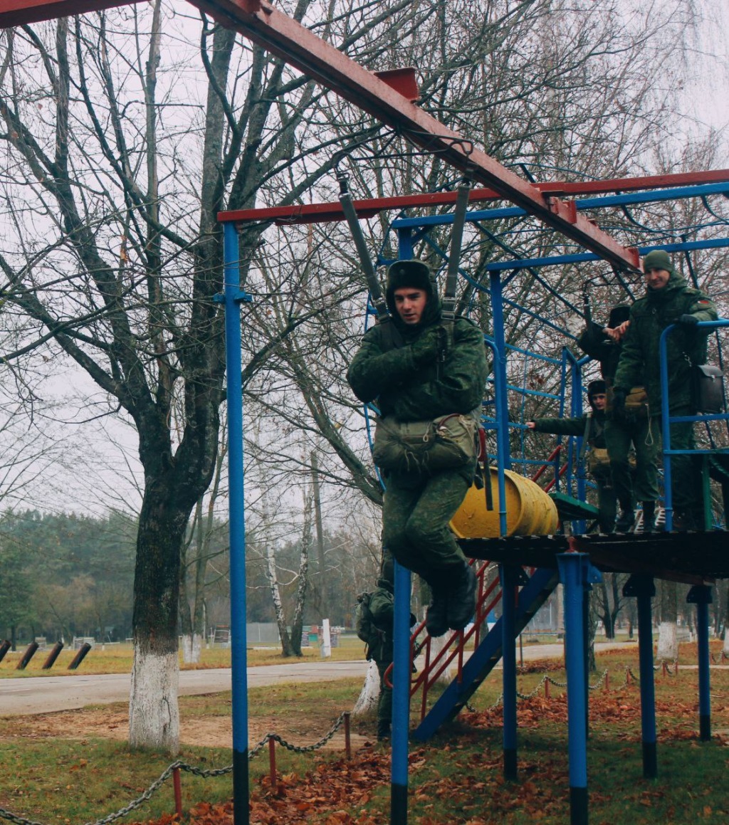 Военнослужащие нового пополнения войсковой части 89417 постигают азы воздушно-десантной подготовки. Сейчас они готовятся к своему первому прыжку с парашютом.