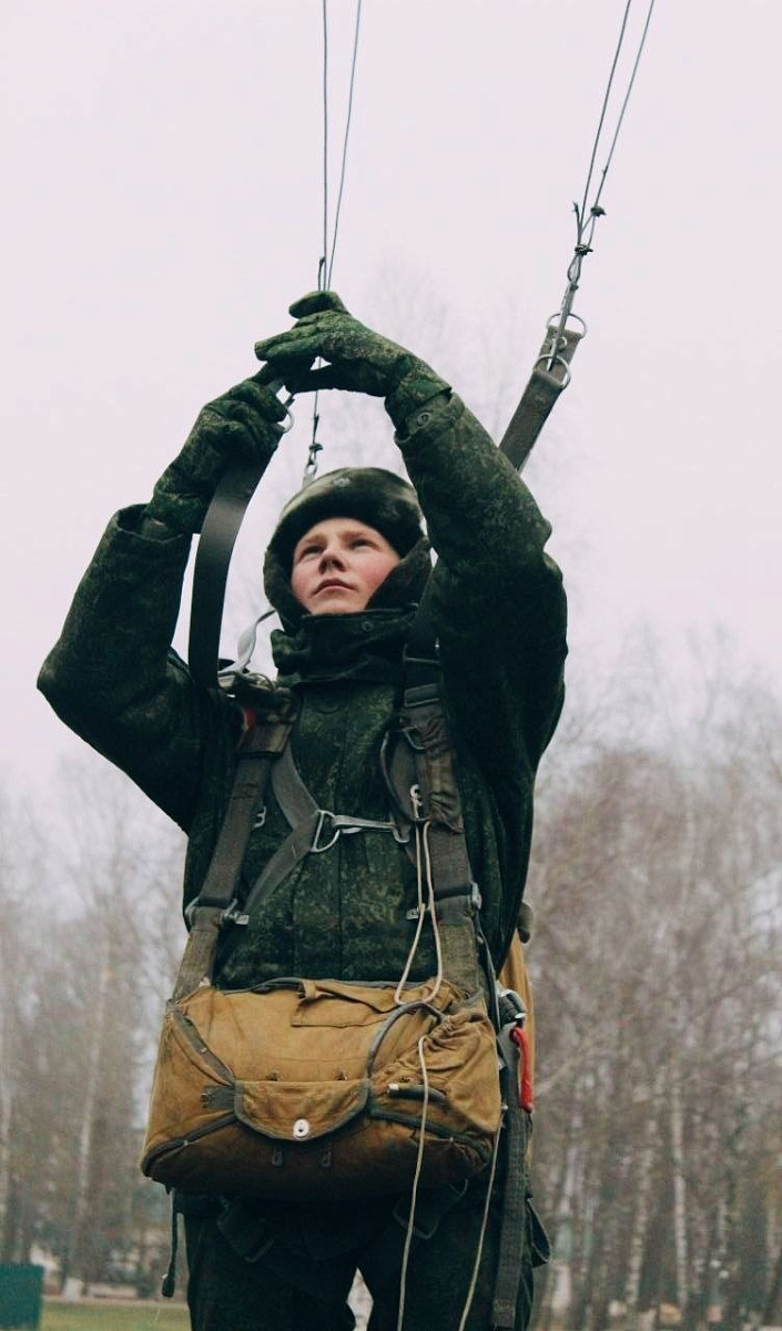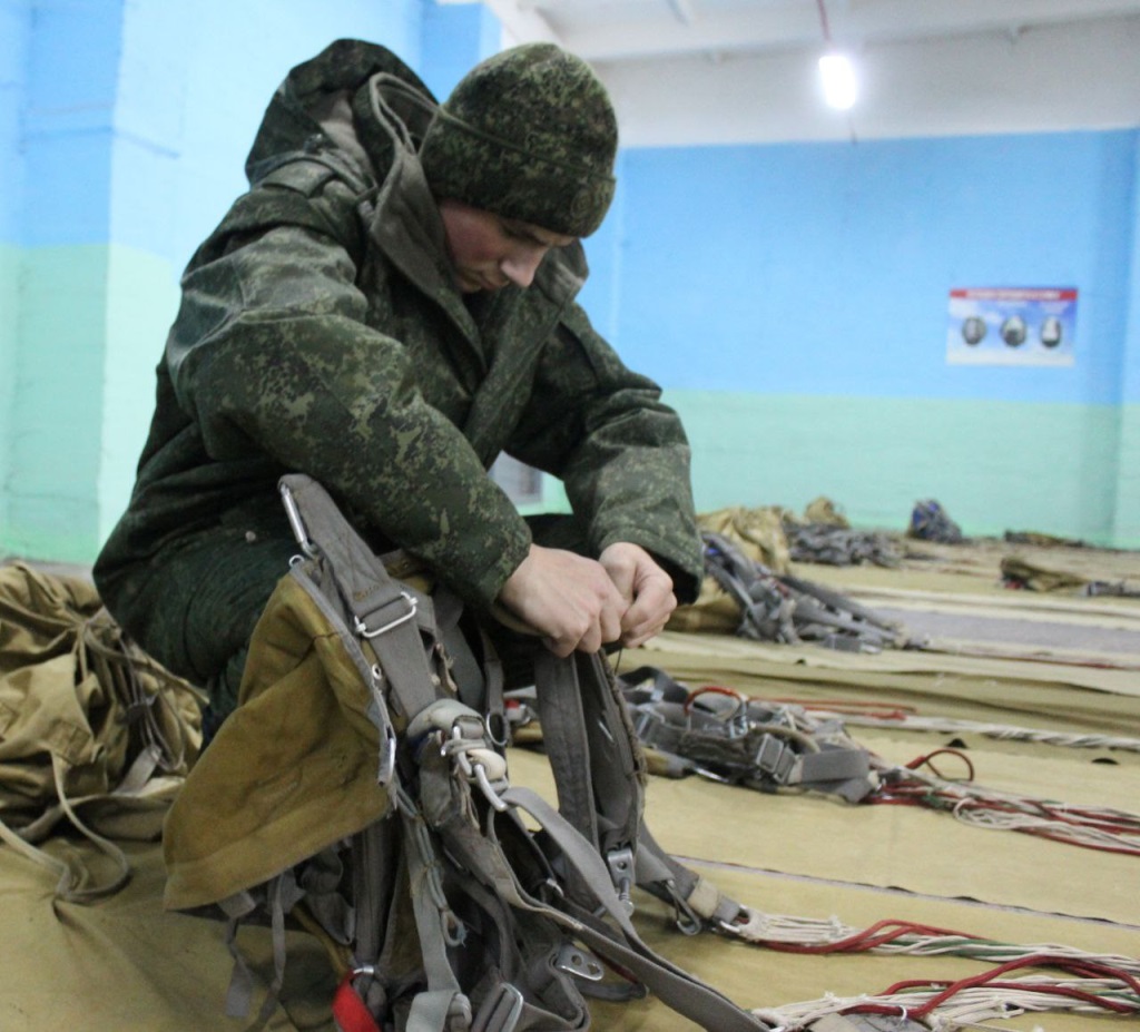 На занятиях новобранцы изучают устройство десантной парашютной системы Д-6 серии 4, отрабатывают действия парашютиста в воздухе и при приземлении, уделяя особое внимание технике безопасности.