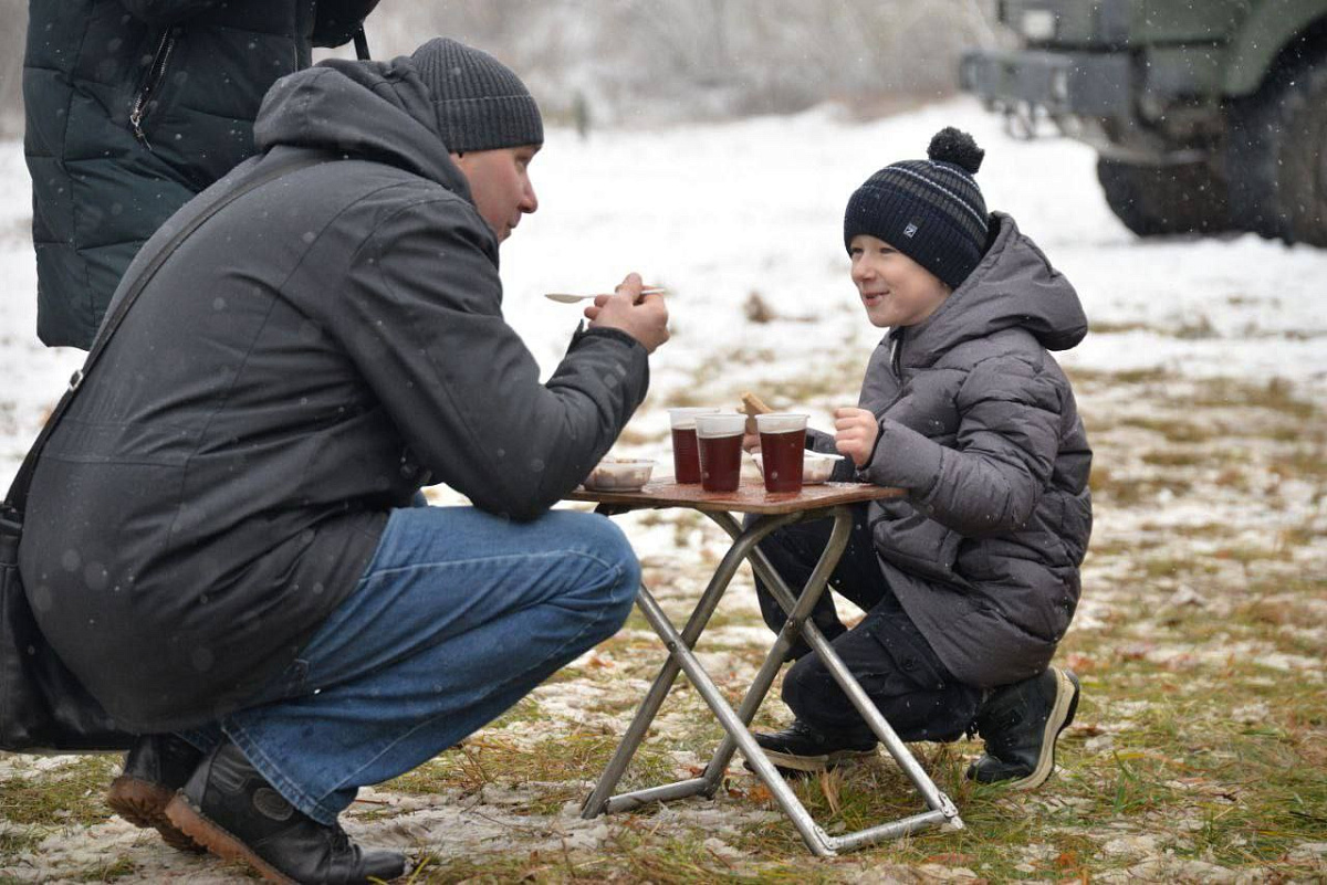 Была организована выставка вооружения и военной техники, а также гостей угостили солдатской кашей и чаем.