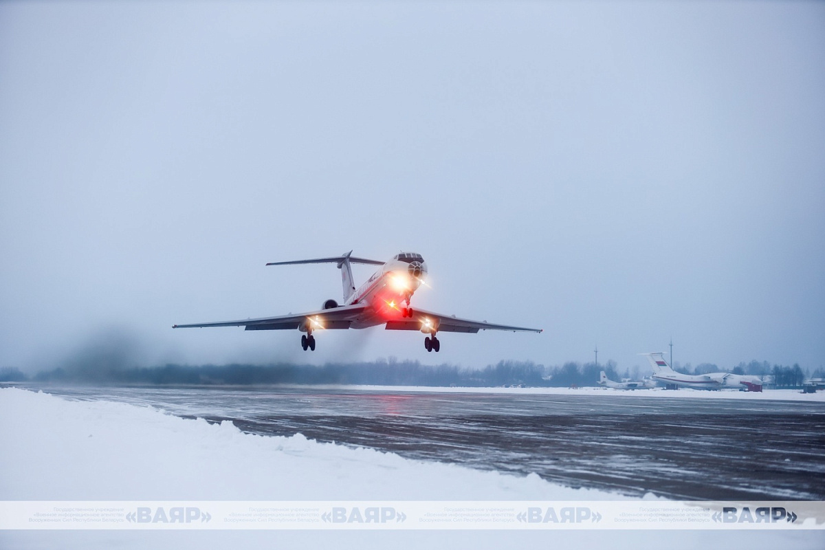 Также в воздух поднимаются военно-транспортный самолет Ил-76МД и пассажирский Ту-134А-3.