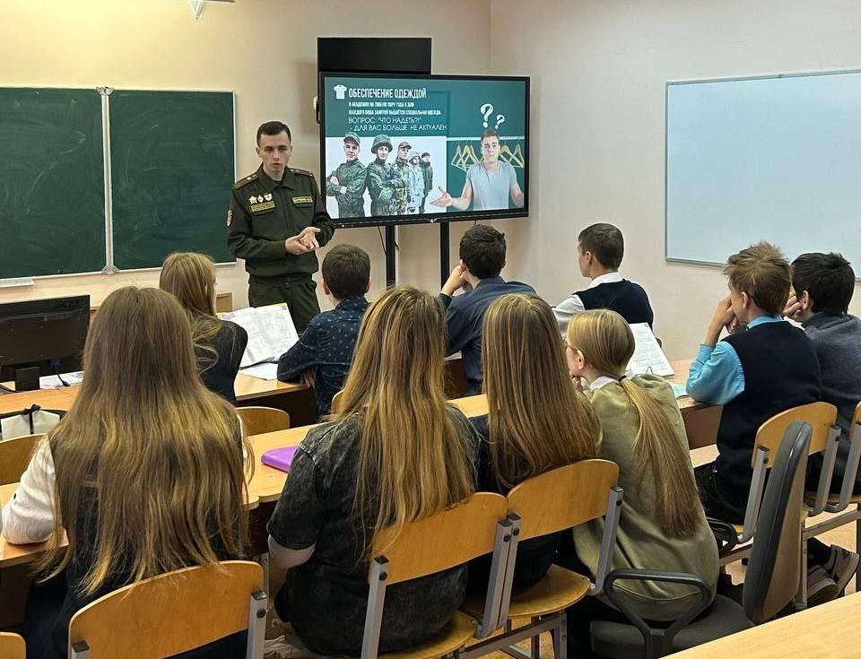 В рамках профориентационной работы военнослужащие 307-й гвардейской школы подготовки специалистов мотострелковых и десантных подразделений 72-го гвардейского Объединенного учебного центра подготовки прапорщиков и младших специалистов посетили средние школы и гимназии Чечерского района.