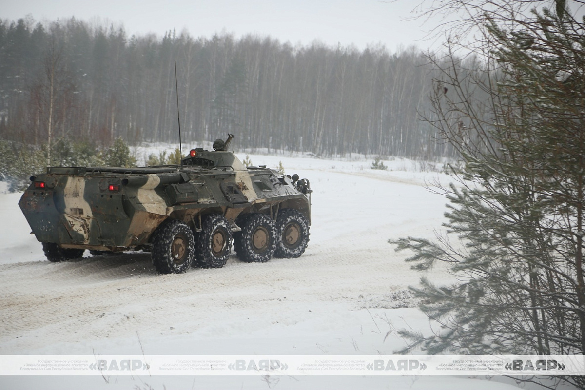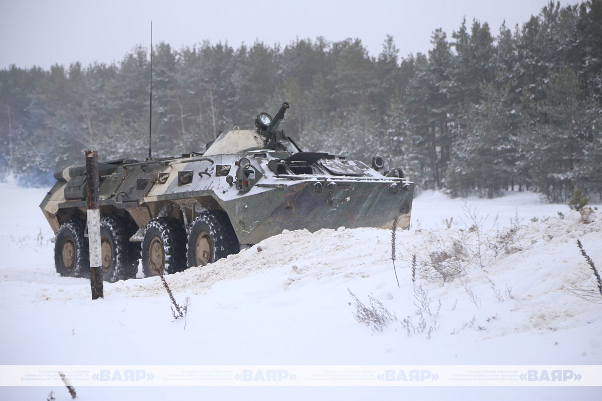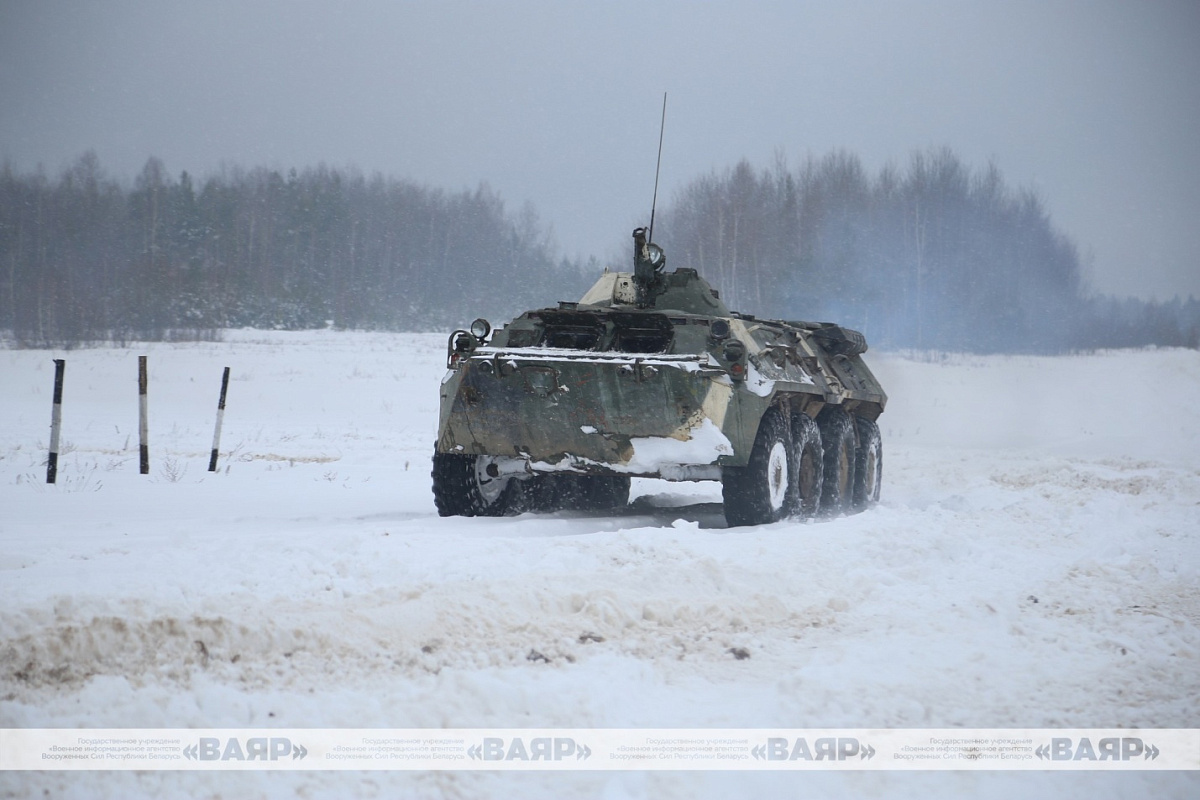 На танкодроме 227-го общевойскового полигона прошло занятие по вождению БТР-80 с курсантами четвертого курса факультета военной разведки Военной академии Республики Беларусь.