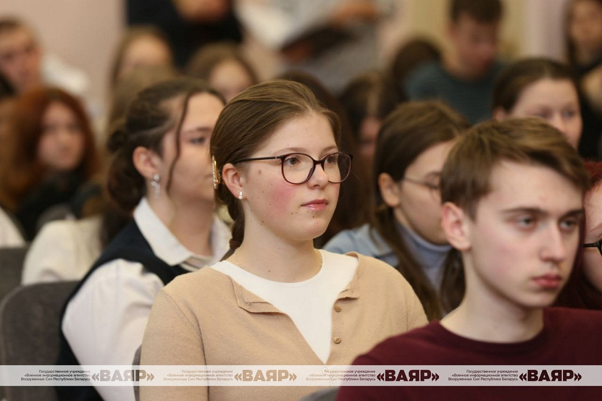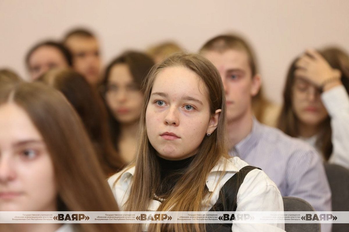 Также перед школьниками выступили заместитель начальника управления — начальник 1-го отдела управления информации ГУИР Министерства обороны полковник Денис Фёдоров и председатель Республиканского совета общественного объединения «Белорусский союз офицеров» генерал-майор запаса Сергей Бобриков.