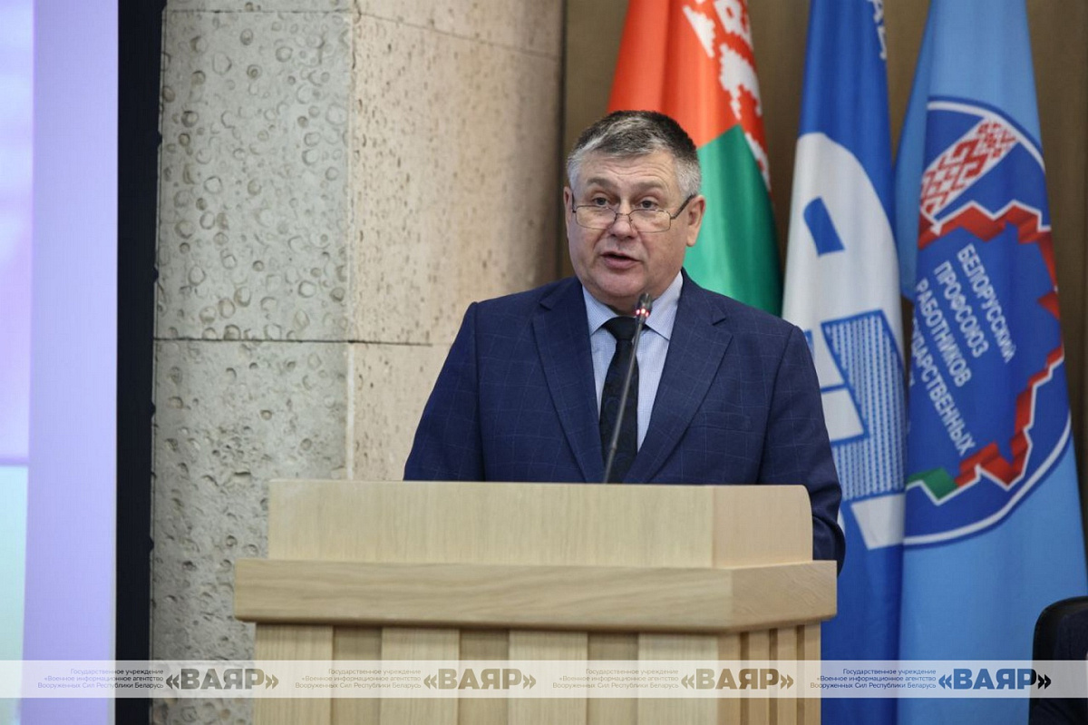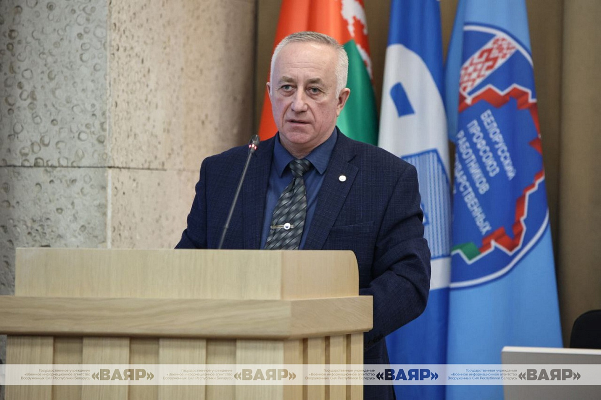 В Центральном Доме офицеров Вооруженных Сил состоялся V пленум объединенного отраслевого профсоюзного комитета, возглавляемого Владимиром Счастным, Объединенной отраслевой профсоюзной организации Вооруженных Сил Республики Беларусь Белорусского профессионального союза работников государственных и других учреждений. В нем приняли участие первый заместитель начальника главного управления – начальник управления морально-психологического обеспечения главного управления идеологической работы Министерства обороны полковник Олег Копыл и председатель Белорусского профсоюза работников государственных и других учреждений Сергей Потапенко.