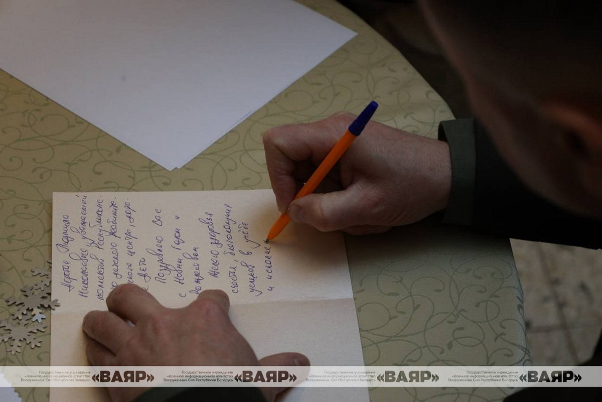 Гости вместе с детьми украсили новогоднюю елку шарами пожеланий, посетили мастер-класс по изготовлению новогодних открыток. Военнослущие вручили детям подарки.