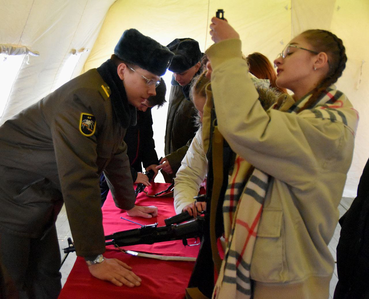 После  торжественного собрания военнослужащие провели для гостей экскурсию.  На восьми выставочных тематических площадках они ознакомились с вооружением и военной техникой, стрелковым оружием, примерили экипировку.