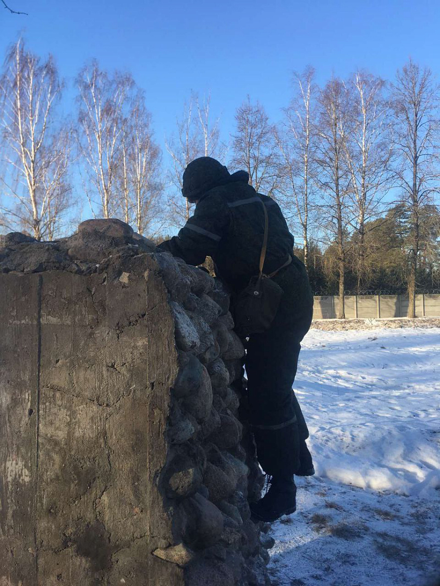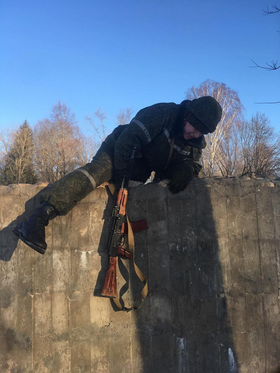 Курсанты 12-й школы подготовки специалистов подразделений связи 72-го гвардейского Объединенного учебного центра подготовки прапорщиков и младших специалистов в рамках тактической подготовки преодолели психологическую полосу препятствий. Она насыщенна элементами — это разрушенная стена, отвесная стена, разрушенный мост и другие.