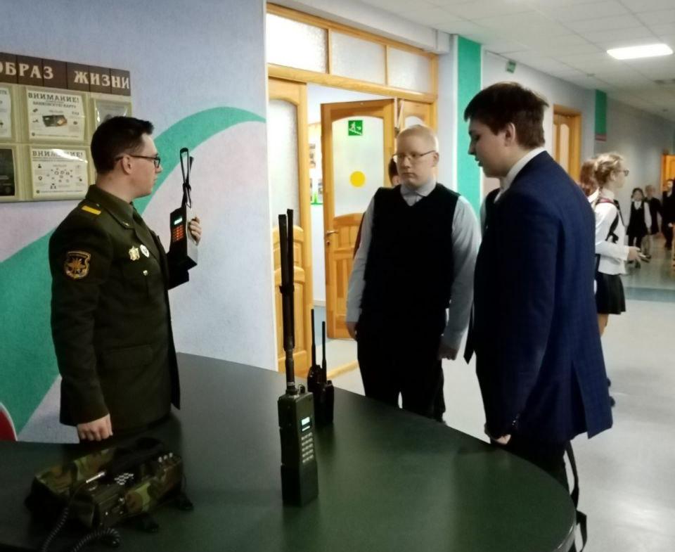 Военнослужащие 86-й бригады связи провели выездной день открытых дверей для учащихся Колодищанской средней школы № 2. Майор Артём Кислицын рассказал историю формирования войск связи.