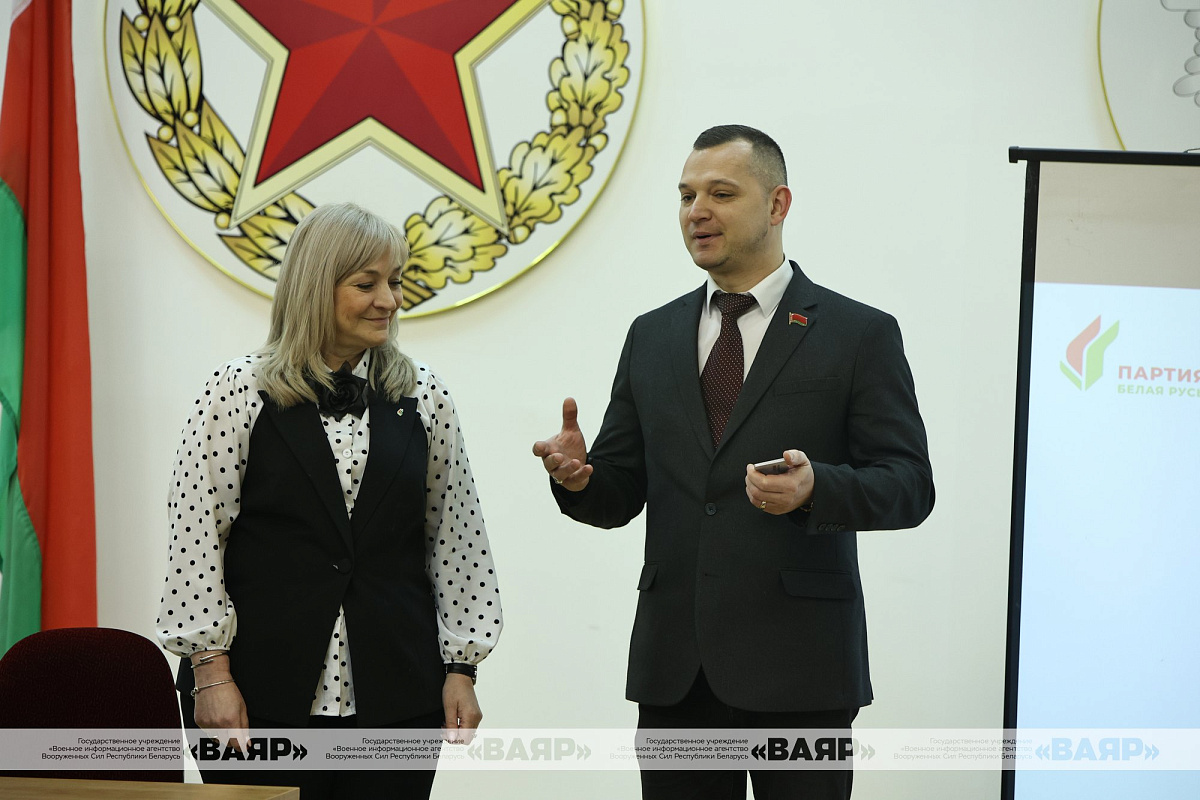 Сегодня накануне единого дня голосования по выборам депутатов в Палату представителей Национального собрания и местные Советы депутатов в тыле Вооруженных Сил состоялась встреча председателя Партизанского районного отделения г. Минска Белорусской партии «БЕЛАЯ РУСЬ» Жанны Гвозд и заместителя председателя Партизанского районного отделения г. Минска Белорусской партии «БЕЛАЯ РУСЬ» Андреем Михедко с гражданским персоналом строительно-эксплуатационных организаций Вооруженных Сил.