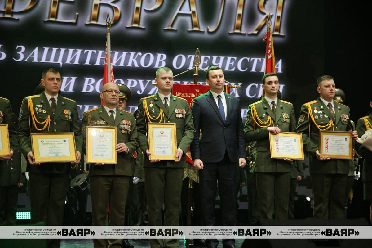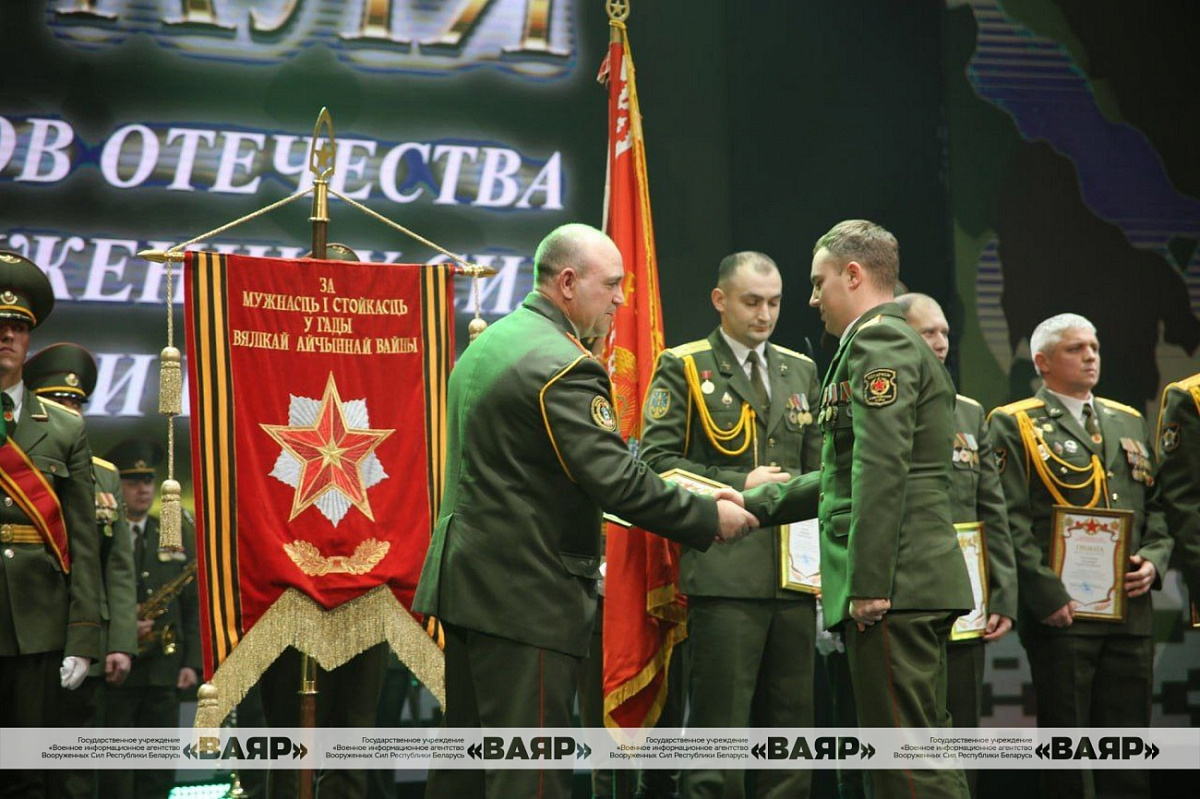 На торжественном собрании лучшие военнослужащие были награждены грамотами и ценными подарками. Мероприятие завершилось праздничным концертом.