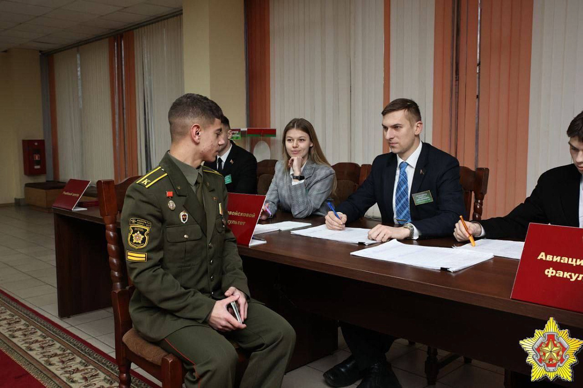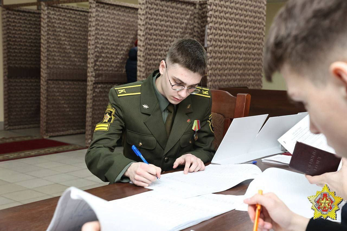 Курсанты и военнослужащие реализуют свое конституционное право и принимают участие в голосовании на избирательном участке в клубе «Ракетчик» Военной академии.
