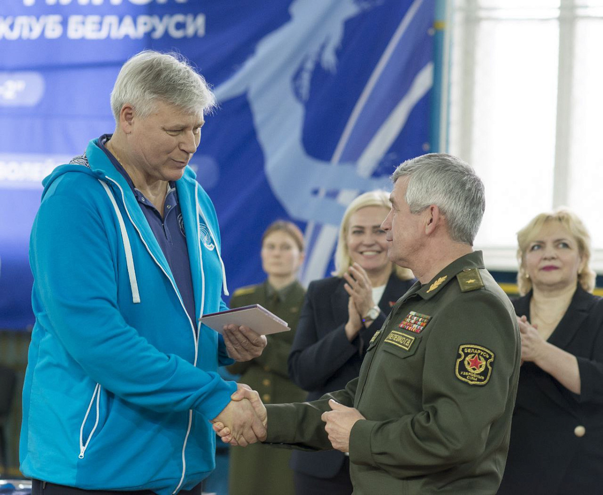 В рамках церемонии открытия матчевой встречи начальник Военной академии Республики Беларусь генерал-майор Геннадий Лепешко вручил главному тренеру команды «МАПИД» памятную медаль «Ваенная акадэмія Рэспублікі Беларусь 70 год» за многолетний вклад в развитие белорусского волейбола.