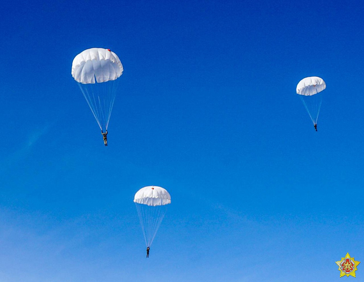 Военнослужащие 103-й Витебской отдельной гвардейской воздушно-десантной бригады совершили учебно-тренировочные прыжки с парашютом.