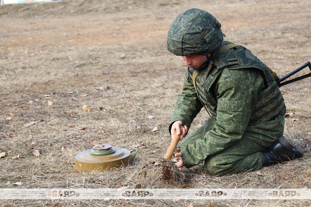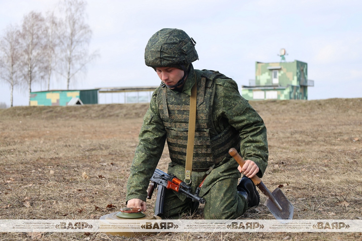 На нескольких учебных точках военнообязанные практикуются в инженерной подготовке. Часть занятий посвящена минно-взрывному делу. Обучаемые отрабатывают вопросы минирования местности, установки в одиночном порядке и строевым расчетом противотанковых и противопехотных учебных мин.
