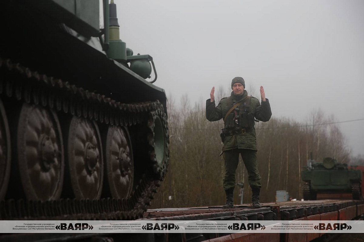 Гусеничную технику гвардейцы погрузили на платформы эшелона, который доставит боевые машины в назначенный район.