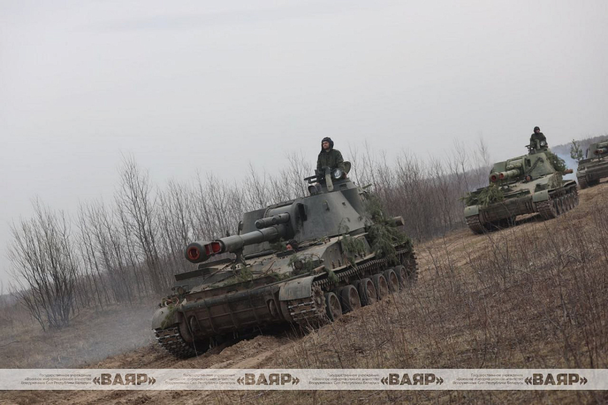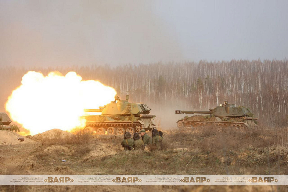 Военнослужащие, призванные из запаса, выполняют задачи по поражению целей огнем из самоходных гаубиц 2С3 «Акация» и 2С1 «Гвоздика» прямой наводкой.