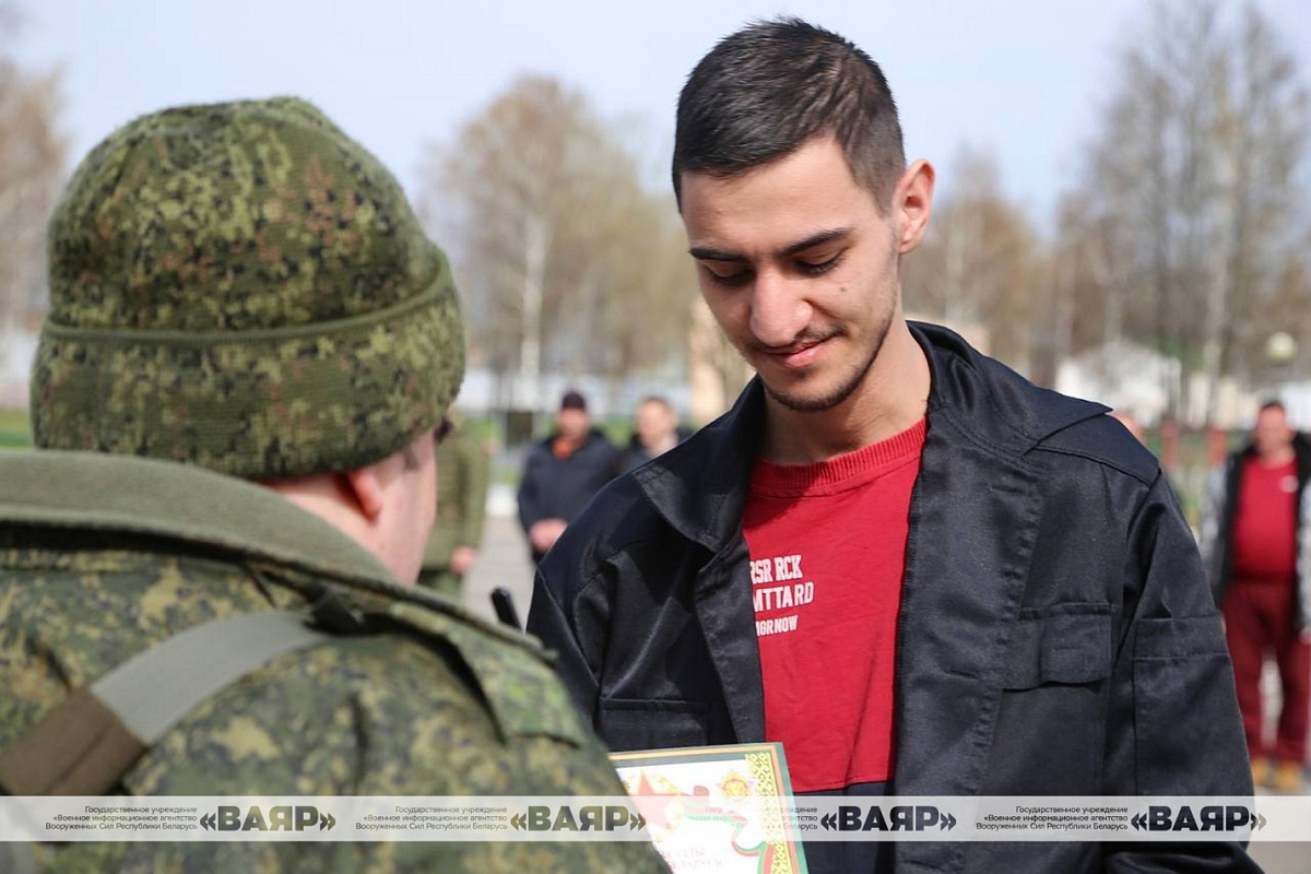 Командир бригады гвардии полковник Алексей Чернуха поблагодарил военнообязанных за службу, лучших из них наградил грамотами.