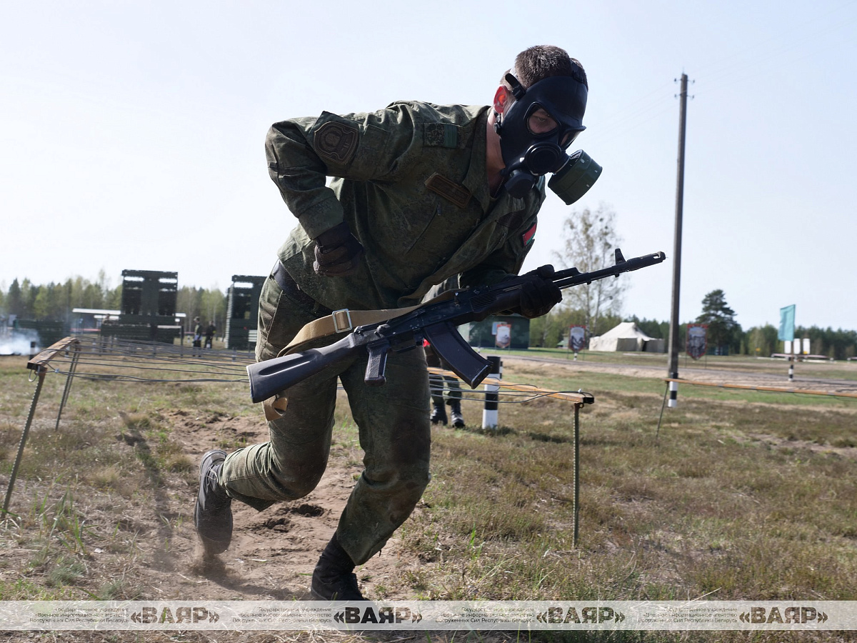 Соревнования включают три этапа: огневую подготовку, преодоление зараженного участка местности и огненно-штурмовой полосы.